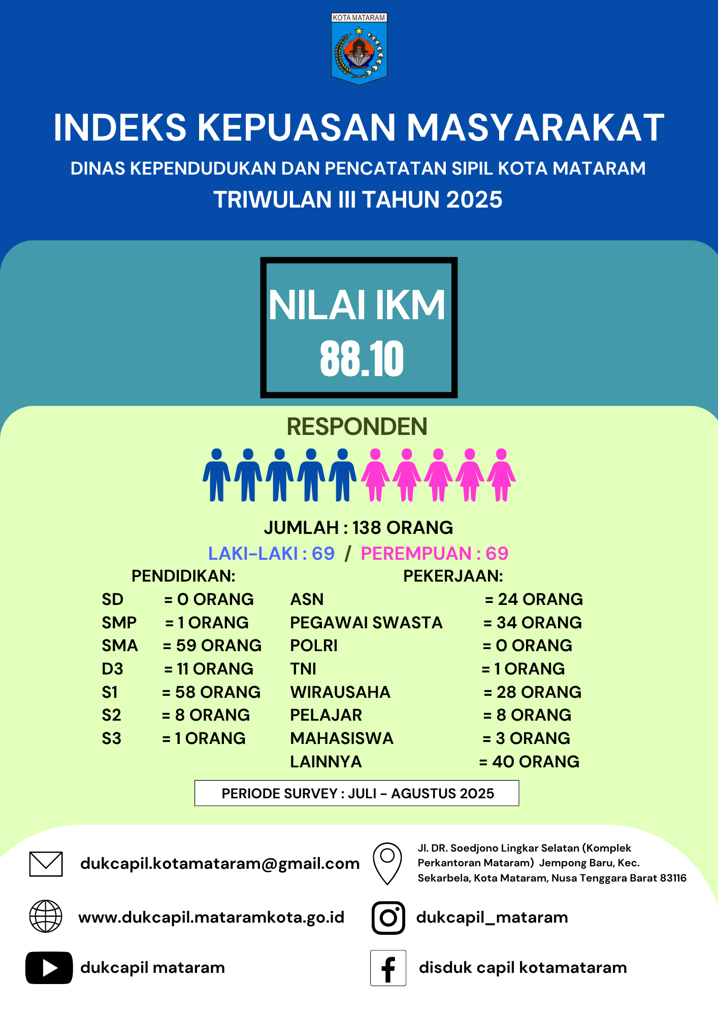 Seluruh pengguna layanan Dinas Kependudukan dan Pencatatan Sipil Kota Mataram